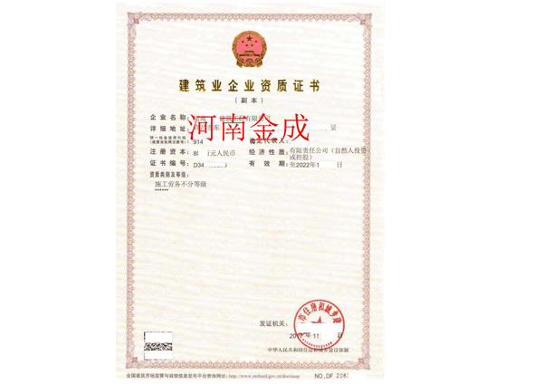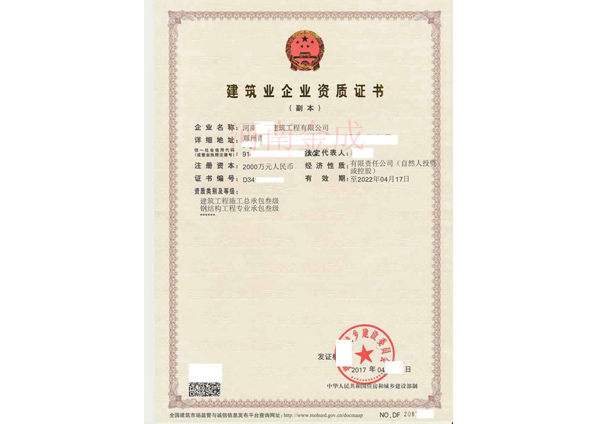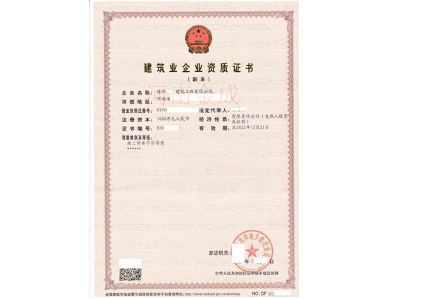 • 建筑業(yè)企業(yè)資質(zhì)證書副本