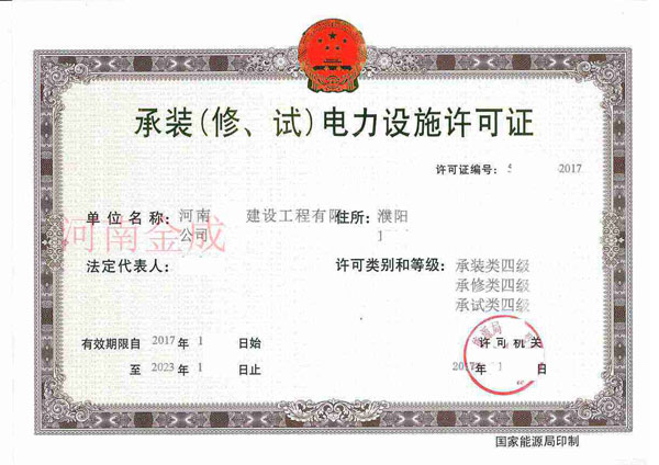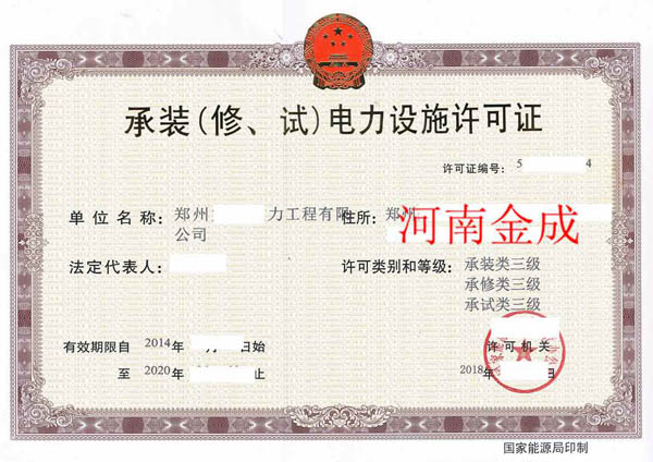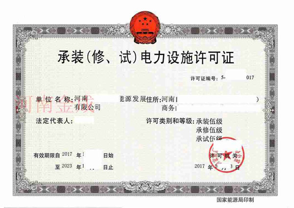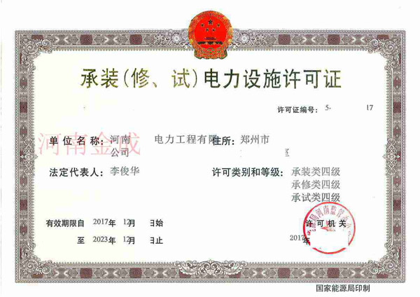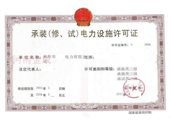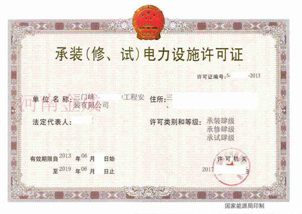 • 承裝(修、試)電力設(shè)施許可證