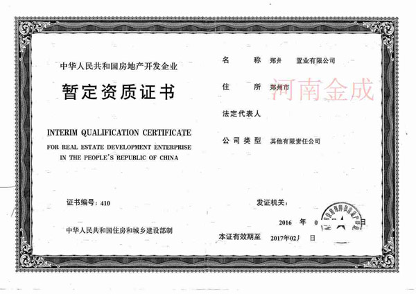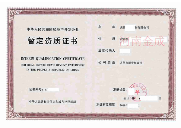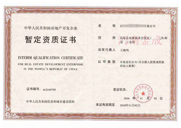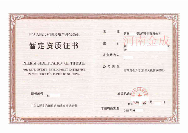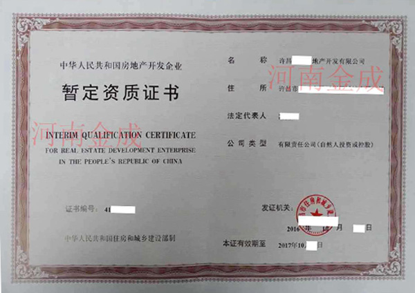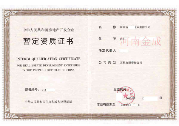 • 房地產(chǎn)暫定資質(zhì)證書