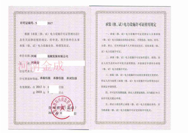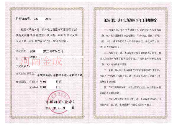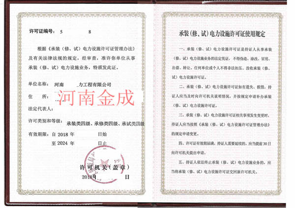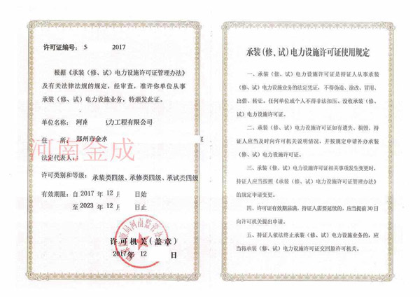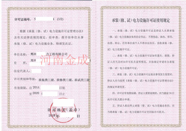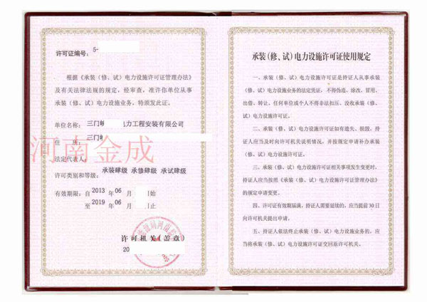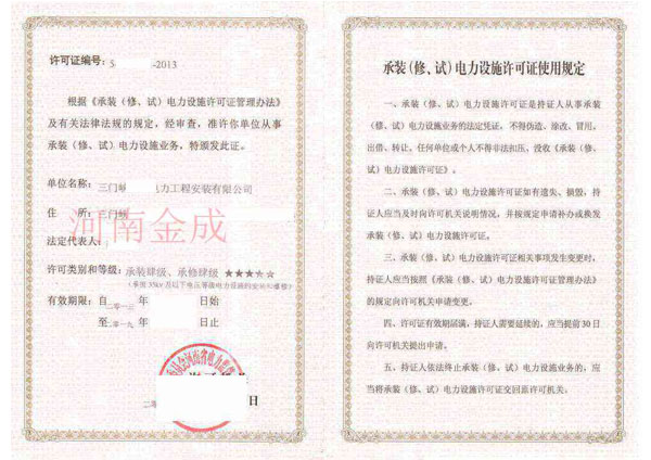 • 承裝(修、試)電力設(shè)施許可副本