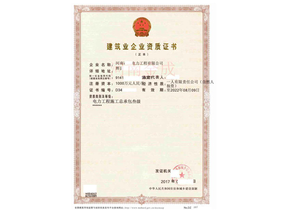 • 建筑業(yè)企業(yè)資質(zhì)證書正副