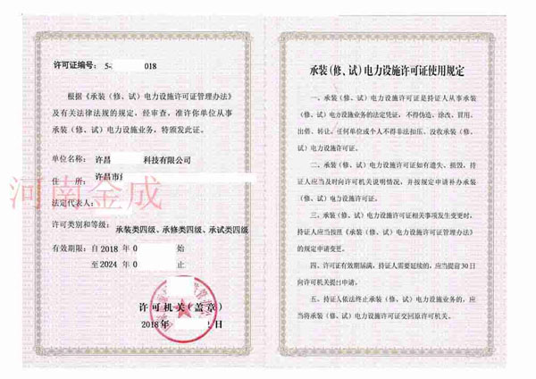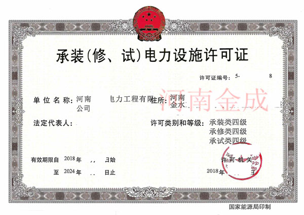 • 承裝(修、試)電力設(shè)施許可